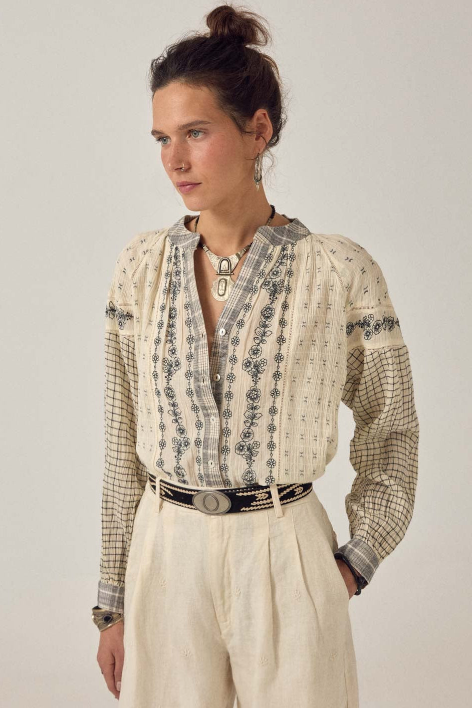 Noemi Bluse - Patchwork Notes - Ash