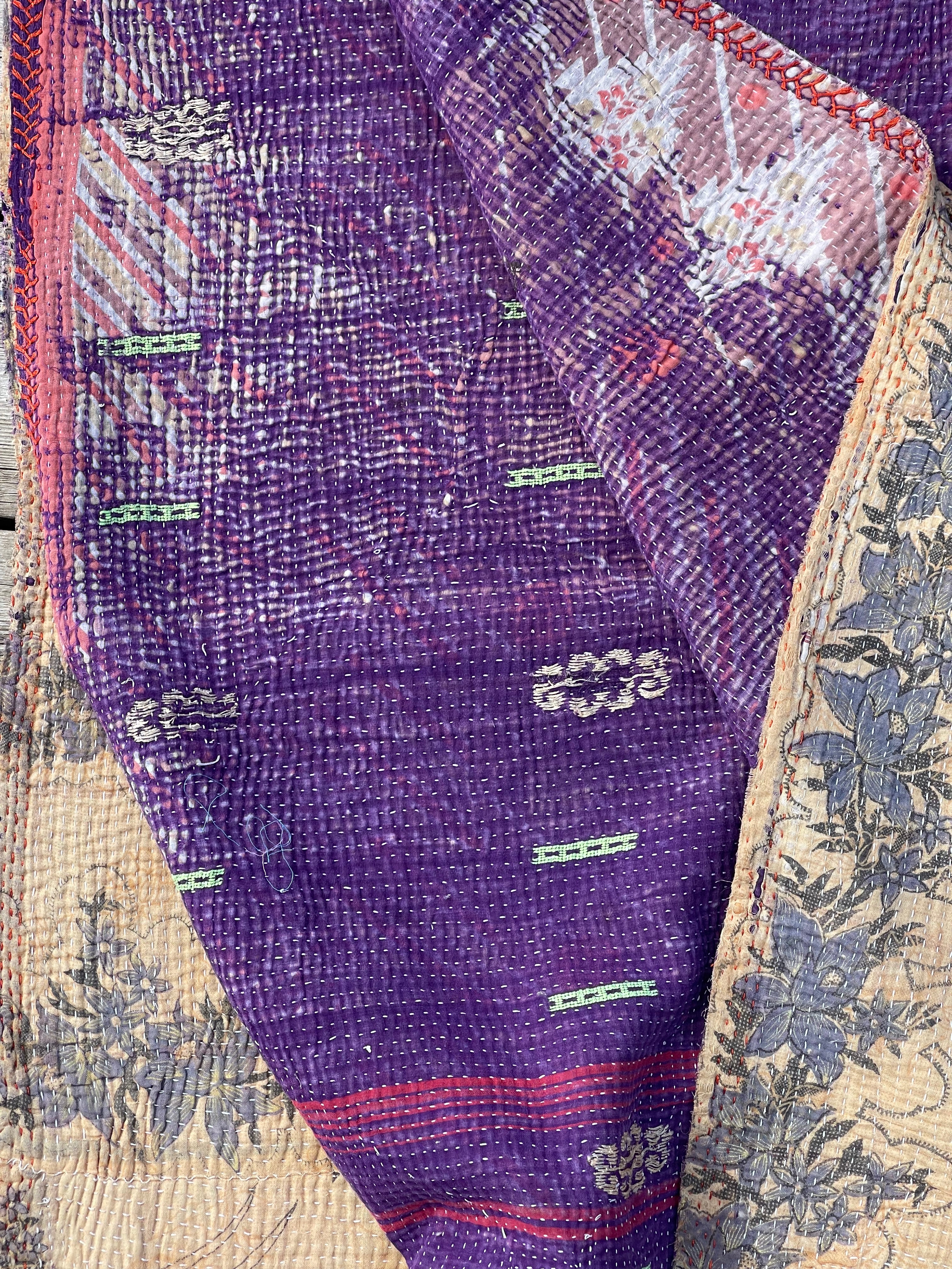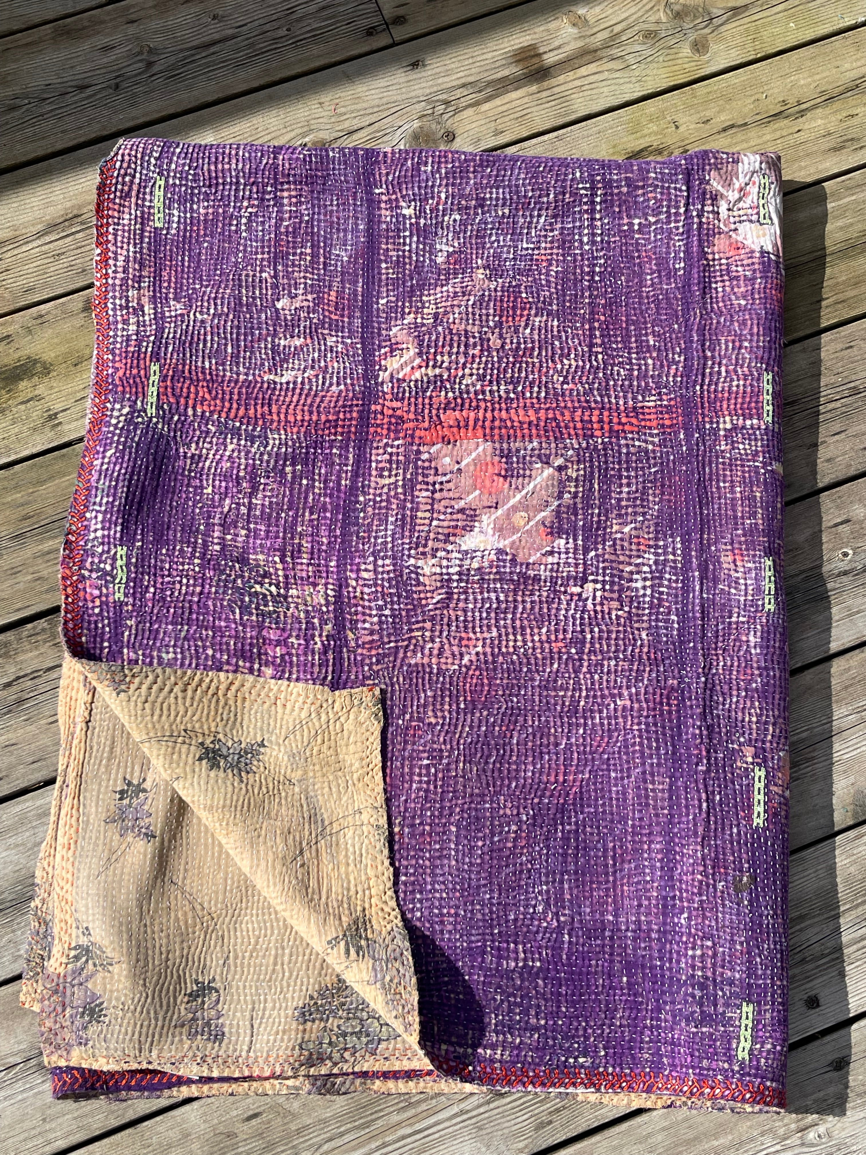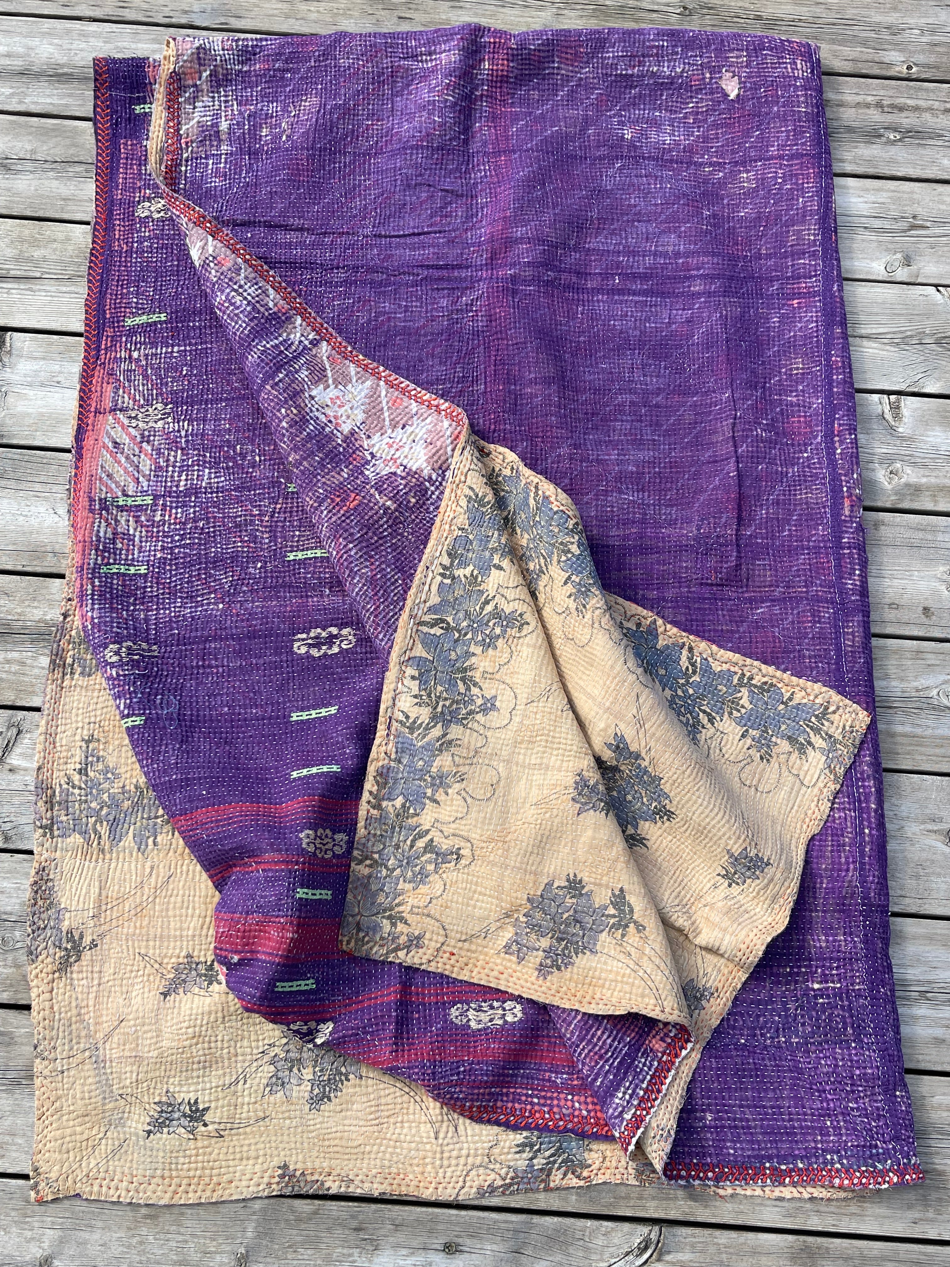 Unikt kanthabrodert bomullsteppe laget av vintage indiske sarier.